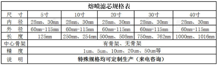 【產(chǎn)品簡介】:40英寸熔噴濾芯長度在1000-1016mm,顆粒會在pp熔噴濾芯孔道中發(fā)生架橋現(xiàn)象,使小于孔道的顆粒也能被阻攔住,過濾效率在98%以上。自身潔凈度 高,對水質(zhì)。耐酸、堿等化學試劑及有機溶劑的腐蝕。