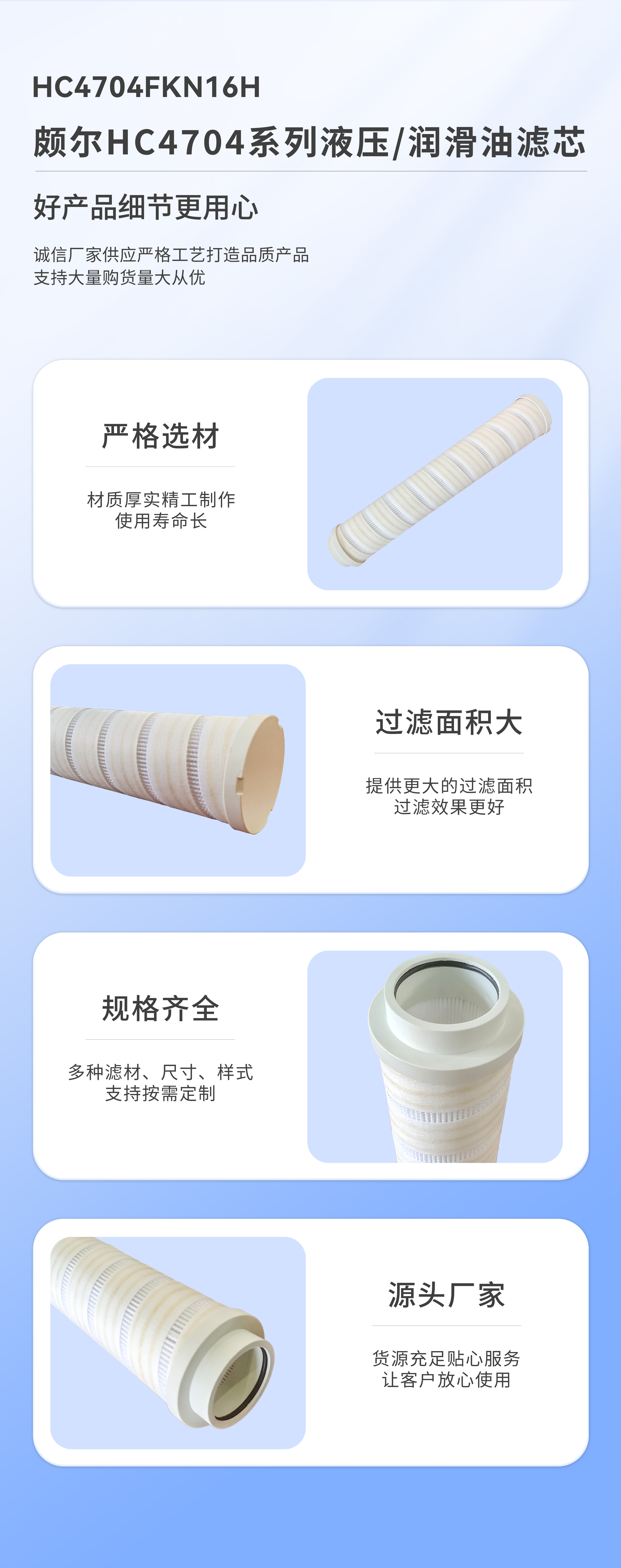 【產(chǎn)品簡(jiǎn)介】:頗爾HC4704系列液壓潤(rùn)滑油濾芯,過濾精度:6微米 過濾比β≥200 濾芯長(zhǎng)度16英寸,密封圈材質(zhì):丁晴橡膠。