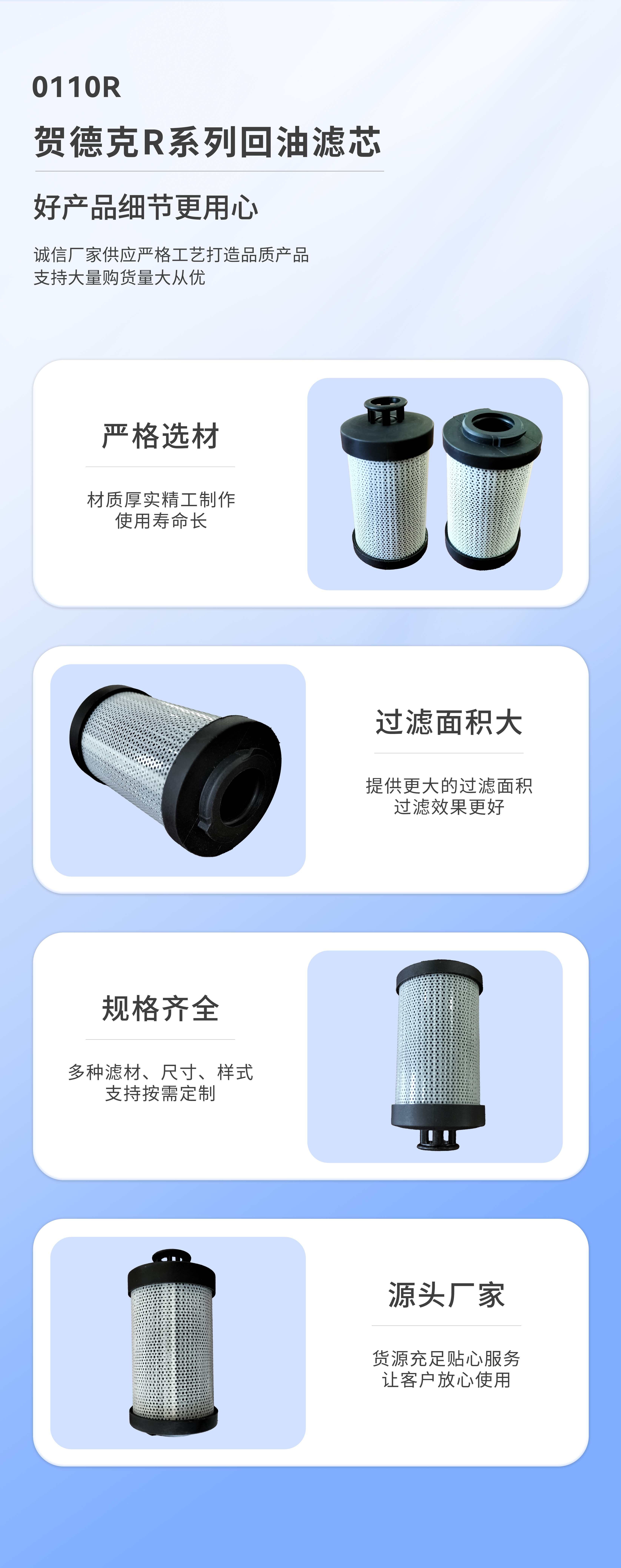 【產品簡介】:新鄉北方濾器廠家供應賀德克R系列回油濾芯,流量:110L/min 精度:3、5、10、20微米可選。 賀德克濾芯具有過濾精度高、納污量大、使用更換方便等特點。
